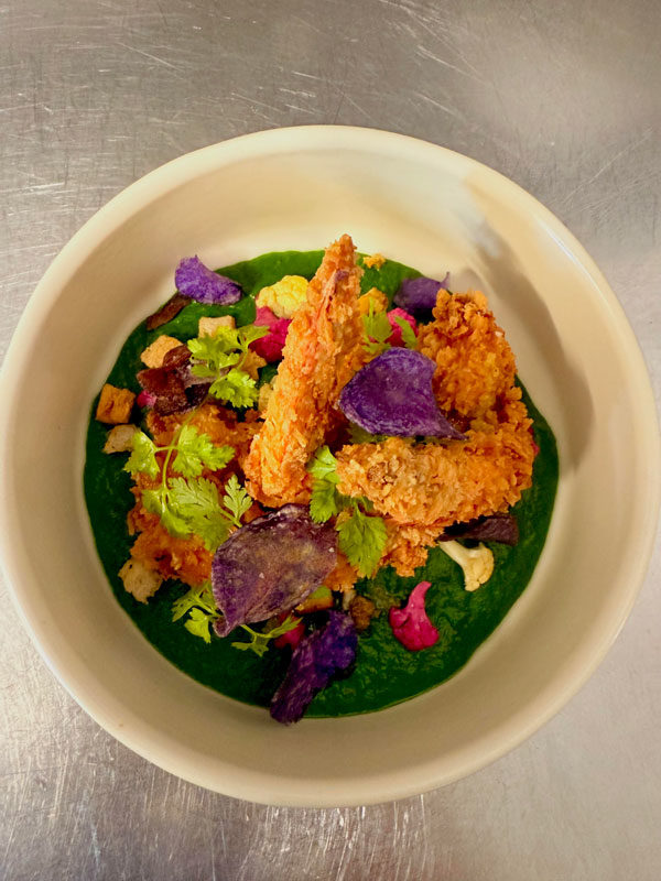 Pour sa deuxième saison au Grand Bleu, le chef Damien Goutry confirme son identité : une cuisine moderne et exigeante, construite autour de produits de saison, issus en priorité de producteurs et artisans locaux. Une approche précise, en constante évolution, au service d’une expérience toujours plus aboutie.